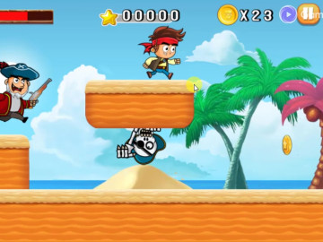 Jake vs Pirate Run est un jeu de course passionnant où vous devez aider un jeune marin à franchir un parcours d'obstacles difficile tout en étant poursuivi par un pirate maléfique qui veut voler son trésor. Pendant que vous courez et faites face à toutes sortes d'obstacles mortels et d'ennemis dangereux, n'oubliez pas de regarder en arrière et d'éviter de vous faire tirer dessus par le pirate. Amusez-vous et profitez d'un jeu vraiment impressionnant tout en vous efforçant de battre les 5 niveaux et de terminer la mission en aidant Jake à atteindre son navire et à s'éloigner de toute menace.